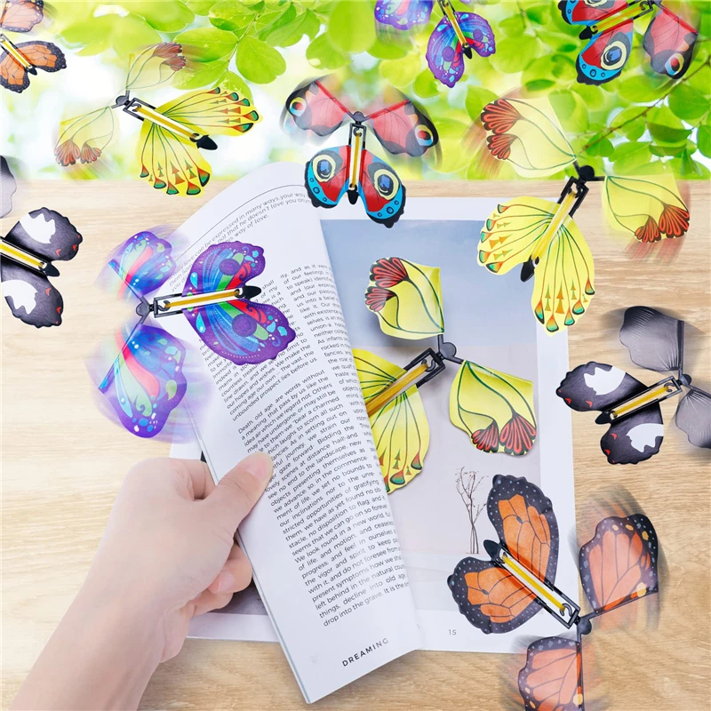 Heytech Magic Wind Up Flying Great Surprise Gift Butterfly In The Book Rubber Band Powered Magic Fairy Flying Toy Great Surprise Gift 5 Packs Toys Games Amazon Com